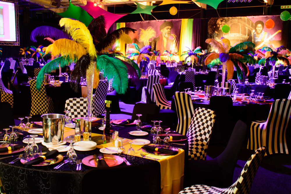 Decor & Themes Some ideas and suggestions as follows: Winter Wonderland Christmas in July Around the world Mardi Gras Hollywood/Oscars Rock n Roll Moroccan Casino evening Arabian Nights Masquerade Ball Murder Mystery Karaoke Carnival Chocolate and wine tasting Food and wine pairing Hollywood Oscars Mardi Grass Theme Moroccan 1 Moroccan Around the World Hollywood Oscars 1